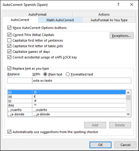 La autocorreción es la funcionalidad de Word que cambia automáticamente texto erróneo por otro. Puedes añadir errores tipográficos que haces con frecuencia, con su versión corregida. Pero también puedes sustituir abreviaciones por textos que quieres hacer aparecer automáticamente.