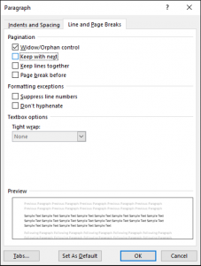 • Evitar siempre las series de párrafos blancos. Si un título u otro fragmento de texto, otro párrafo tiene que pasar a la página siguiente, si hace falta, mejor pedir al párrafo que siga con el párrafo siguiente: «keep with next».