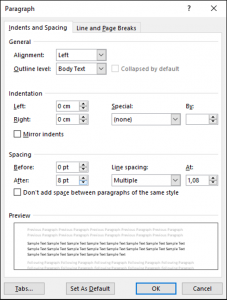 En tal caso, hay que indicar qué espacio tiene que separar el título del párrafo siguiente (space after)