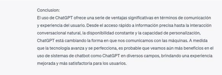 Ahora que llego al final de esta reflexión, me doy cuenta de que podría haber ahorrado tiempo si le hubiera pedido a ChatGPT que escribiera este artículo. Como no me voy a quedar con las ganas y soy curiosa lo hago. Os copio solo la conclusión. ¿Qué os parece?