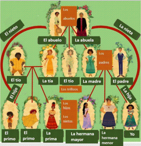 Otro tema que se puede trabajar con esta película.  Se puede proponer a los alumnos que lean los textos siguientes, que descubran el léxico de la familia  y dibujen el árbo genealógico de la familia Madrigal